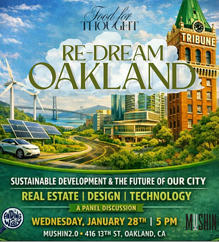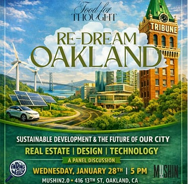 Join us for a Food for Thought experience bringing together leaders across real estate, community impact banking, place management, and technology to explore how urban design, sustainable development, and cross-sector collaboration are shaping Oakland’s future.